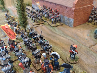 The French attack plan was simple enough, a refused left flank, the most powerful infantry brigade would assault along the road on the right, supported from the centre by infantry to cover their flank. On left, the light cavalry, a distraction/harassing force only, to try and keep the bulk of the British infantry from the moving across to interfere in the main assault. It would another game were I found myself having to attack against an enemy with superior cavalry forces. How to neutralise them? (Maybe shoot them, a lot!).